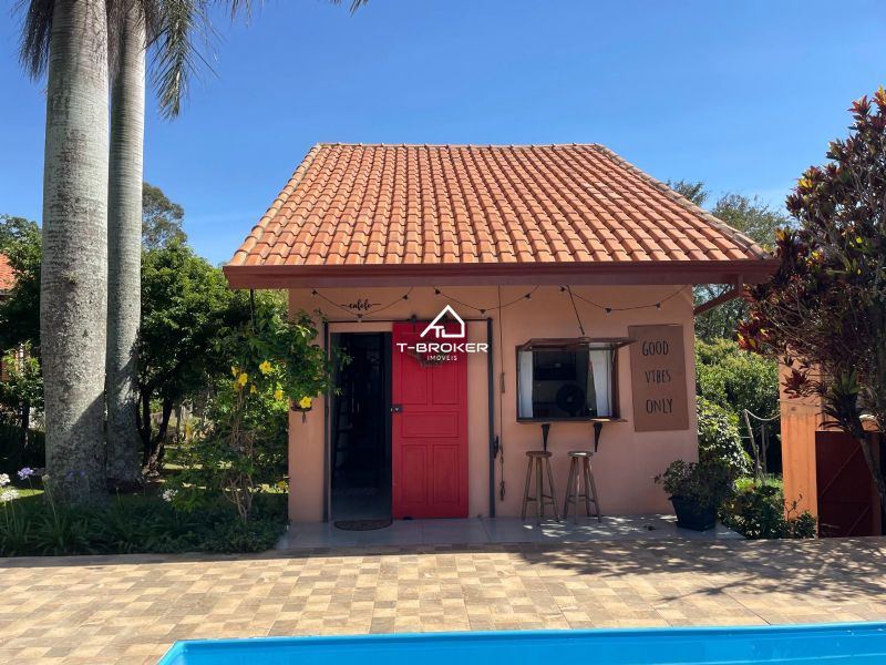 ÁREA DE LAZER: Área gourmet com um espaço delicioso com churrasqueira, fogão a lenha, forno de pizza e área com varanda. Piscina 4 x 8 com cascata e pomar com diversos pés de frutas.